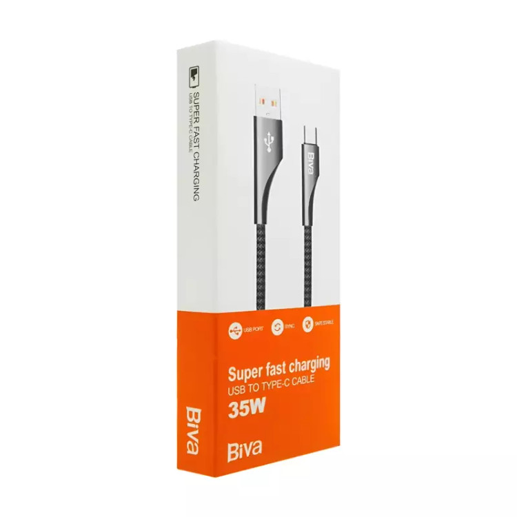 کابل شارژر دیتا دار usb به تایپ سی سوپر شارژ biva